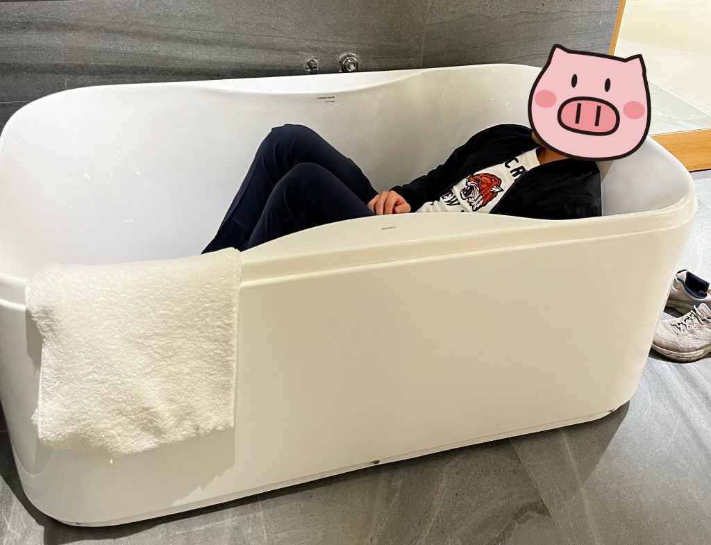 三款的長度皆落於 170、寬度皆落於 80,整體躺起來都是長度剛好、寬度不擠背的舒適狀況,最後使用刪去法排除,INAX 是我們第一個刪去的選擇,考量他的價格比較高,但相比其他兩款並沒有更突出的特點;剩下在 Caesar 以及 OVO 來回拉扯,最終因為 OVO 的質感較好、穩定度更好的原因成為最終選擇,歷時一個月、四間展間的奔波,總算選出新家的浴缸!