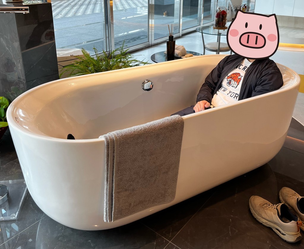 OVO京典衛浴 – BK205B 試躺心得:現場僅有展示 160 公分的版本,對於我躺起來是舒適且剛好的,不過因為浴缸內壁較厚,所以對於身型較寬的男友來說會有壓背感。