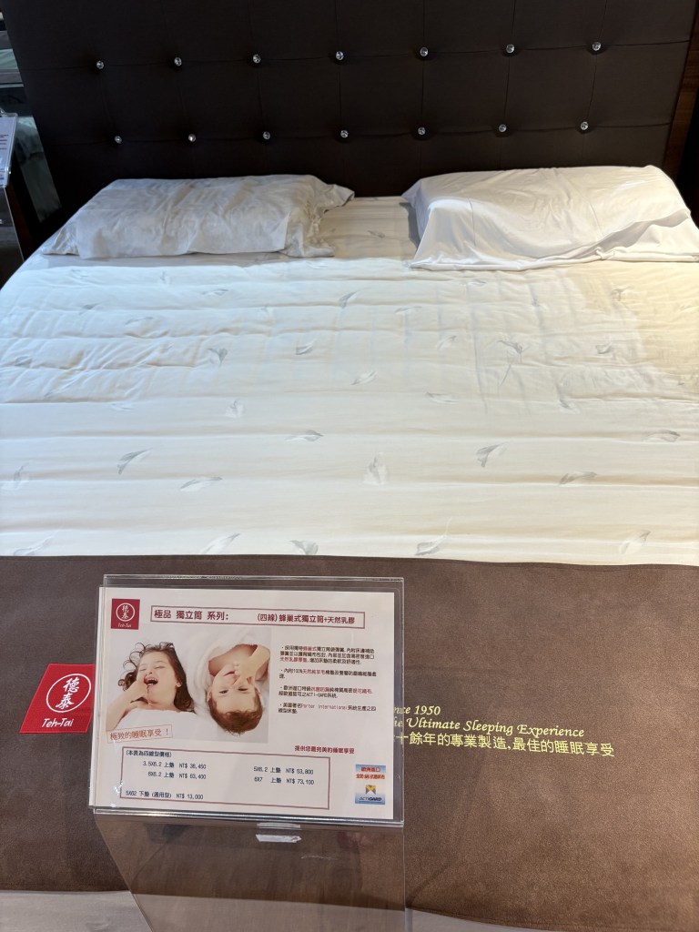 我們參觀的是內湖門市,接待我們的小姐非常有耐心、專業,且會根據我們的需求推薦;小插曲是我們一進門就說要看某某款式,但其實該款是法蘭西德泰的床墊,店員跟我們說明